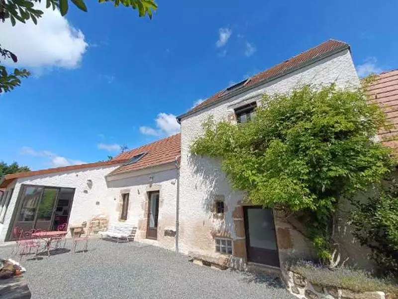Maison en pierre composée de plain pied d'une cuisine équipée lumineuse, salon, une chambre, salle d'eau,wc; à l'étage: une chambre avec grand bureau; une dépendance attenante comprend un coin cuisine, salon, une chambre, wc et point d'eau, patio. Terrain sans vis-à-vis d'environ 1 000m² avec une terrasse couverte. Deux garages.