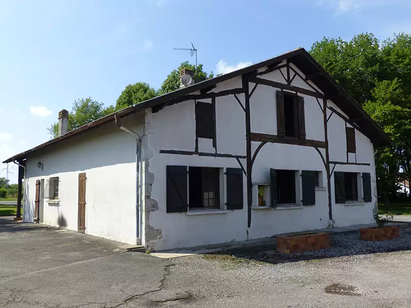 Landaise de plain pied, 150 m² sur 6200 m² de terrain plat, ESTIBEAUX comprenant un séjour avec cheminée, salle à manger, cuisine aménagée, 4 chambres dont une avec point d'eau, SDB avec douche, chaufferie, WC, arrière cuisine, combles aménageables, conserverie, ainsi que 400 m² de dépendances avec laboratoire, chambre froide, vestiaires, cellier, salle de gavage, garages, abri, atelier. Située à la campagne, sans voisin proche, dans un environnement agréable. Chauffage central, taxe foncière 850 euros. Vidéo disponible sur demande.