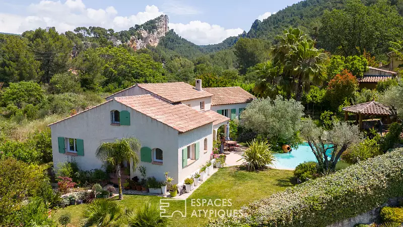 Au calme absolu, située en fond d'impasse, au coeur du village de Sainte Anne D'Evenos, cette maison de charme d'une surface de 150m2 prend place dans un jardin de 1200M2. Elle dispose de volumes bien calibrés en parfaite harmonie avec ses espaces extérieurs. Un très beau jardin paysagé avec sa piscine chauffée exposée plein Sud, vous promettrons un idéal de vie confortable dans un cadre privilégié. L'entrée dotée de rangements dessert, un beau séjour salon avec une belle hauteur cathédrale. Une cuisine indépendante aménagée et équipée est attenante. Une chambre avec sa salle d'eau vient compléter le ce niveau de plain-pied. Une mezzanine offre un espace bureau et une chambre accessible depuis le séjour. Une nouvelle partie nuit indépendante accueille trois chambres avec rangements et une salle de bains. En sous sol, se dévoile une surface de 70 m2 aménageable selon les souhaits avec sa sortie sur le jardin, ainsi qu'un atelier. A l'extérieur, la piscine chauffée, avec sa plage immergée et sa cascade, se voit entourée d'un très bel aménagement paysagé , d'un jeu de terrasse et d'un kiosque avec son four a pizzas. Un grand garage de 33m2, un atelier viennent équiper ce bien d'exception. CLASSE ENERGIE /B indice 89 et classe CLIMAT A indice 2. Estimation du coût annuel des énergies pour un usage standard (DPE réalisé après le 1er janvier 2024 ) entre 850 et 1190 euros. Les informations sur les risques auxquels ce bien est exposé sont disponibles sur le site Géorisques : www.georisques.gouv.fr. Marie Julie 06.82.56.60.67