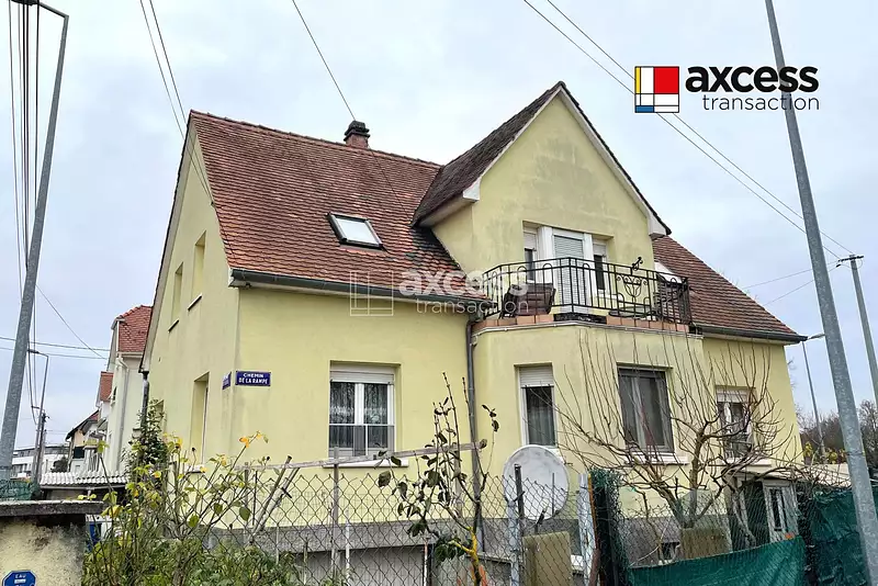 La maison, édifiée en 1950 et d'une surface totale de 150m² est située dans un quartier résidentiel sur une parcelle de 3 ares, et se compose de 2 appartements, à savoir: