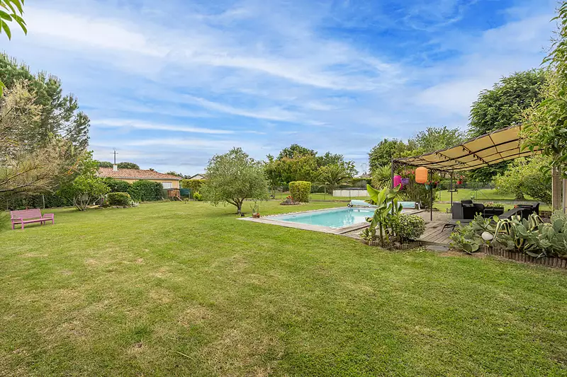 A vendre - Maison 5 pièces Labarthe Sur Lèze (31860) Venez découvrir cette maison construite en 2005, de plain pied au fond d'une impasse, à 5 minutes de Labarthe, dans le village de Lagardelle sur Lèze. Cette maison nous offre une grande entrée donnant sur un beau séjour lumineux, lui même ouvert sur une belle veranda / salle à manger donnant sur le vaste jardin et la piscine. Faites demi tour et découvrez la cuisine entièrement équipée avec en bonus, une arrière cuisine. Dans le coin nuit, 3 chambres et un bureau avec placards et une salle de bain. Au fond, l'accès au double garage de 50 m² attenant à la maison. A l'extérieur, profitez de la piscine et d'un vaste terrain de 2100 m² plat. Plus d'informations sur Contactez votre agence immobilière ERA Jonquieres et Co, spécialiste de l'immobilier. * Honoraires charge vendeur Clement BOUFFIL (EI) Agent Commercial - Numéro RSAC : 921765277 - TOULOUSE.