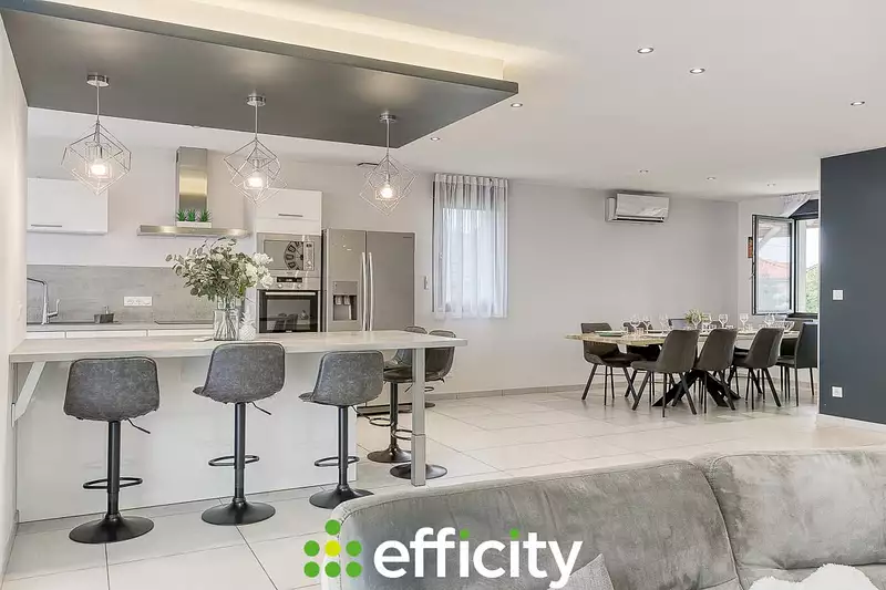 Ici, la vie de famille bat son plein. Dès l'entrée, les volumes généreux de la pièce de vie de 67 m² séduisent par leur luminosité et leur élégance contemporaine.