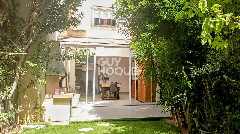 A vendre avec votre agence Guy HOQUET MONTPELLIER Antigone, une grande maison non mitoyenne de 5 pièces, offrant plus de 150 m² (175 m² au sol) et érigée sur une parcelle de terrain de 335 m² bien arboré.