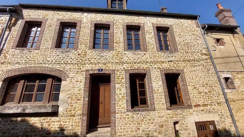 à deux pas du centre ville, au calme, maison ancienne ayant conservée son charme d'antan, sur 860 m² de jardin clos murs et ancien lavoir avec source. Comprenant : une entrée, un salon avec cheminée pierre, un séjour ou chambre, une cuisine meublée, un espace repas avec poêle a bois, ar-cuisine, salle d'eau, wc, autres beaux volumes aménageables sur jardin avec vue. A l'étage, un palier, une chambre, une suite parentale avec salle d'eau, bureau et chambre. Grenier avec velux et lucarne. Caves voutées. Potentiel intéressant. Bel endroit. AGENCE BENOIST ORPI 02 33 25 41 23