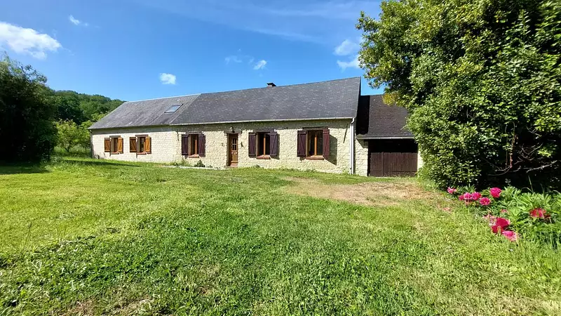 Entre Mortagne au perche et le Mêle sur Sarthe, en belle campagne, maison en pierres comprenant un séjour et salon de 60 m² avec baie vitrée sur terrasse, une cuisine meublée avec séjour, 3 chambres, salle d'eau et wc, buanderie. A l'étage un palier à usage de chambre et salle d'eau, wc. Grenier aménageable restant. Garage voiture. L'ensemble sur 4 hectares prairie dont 2 hectares occupés et loués pour chevaux. A visiter. AGENCE BENOIST ORPI TEL 02 33 25 41 23