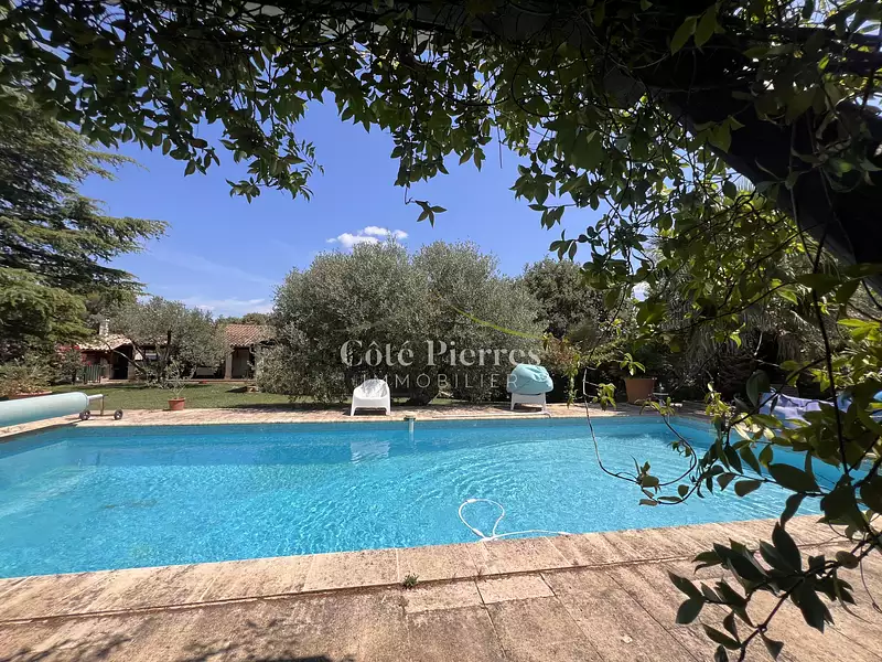 SOUS COMPROMIS PAR NOS SOINS - Villa de 150m2 env, lovée sur un trés beau terrain de 2130m2 sans aucun vis à vis, ou trône un majestueux cédre, au calme absolu en fond d'impasse.La maison de plain pied, sauf un bureau au 1er étage, se compose d'une vaste cuisine(30m2env) de belle facture entiérement équipée, d'un vaste séjour de 57m2 env avec cheminée, avec vue de toutes parts sur le jardin. Une chambre parentale avec sa salle d'eau attribuée, deux chambres. Un sous sol qui couvre la quasi totalité de la maison, vous trouverez une buanderie, une salle d'eau, une cave à vin et de nombreux espaces pour stoker à l'envie. A l' exterieur deux grandes terrasses, et une cuisine d'étè équipée avec un four à pain viennent compléter le tout. Nombreuses annexes sur la partie arriére de la maison, capitelle et potager. Le grand plus un forage!! Bel espace piscine avec local technique.Venez découvrir cette belle maison ou il fait bon vivre en famille et entre amis .