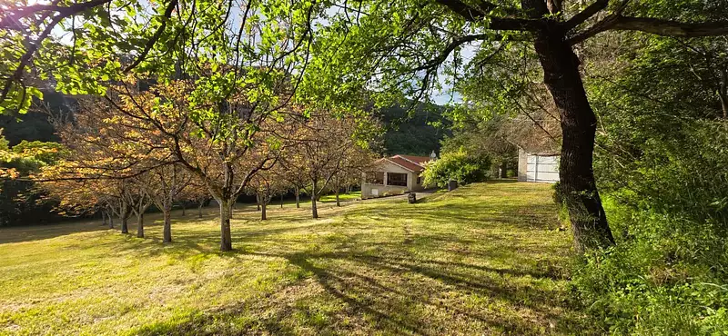 Le terrain, véritable écrin de nature, s'étend sur plus de 5 000 m² et accueille de majestueux noyers ainsi qu'une belle variété d'arbres fruitiers. Ce cadre enchanteur, avec sa vue imprenable sur les gorges, offre un décor paisible et ressourçant, idéal pour les amoureux de calme et de nature.