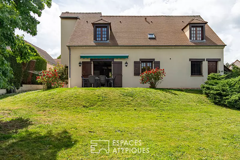 Située à 5 minutes du village de Neauphle-le-Château, cette maison, nichée dans un environnement pavillonnaire paisible et recherché, est édifiée sur un terrain de 630 m² et bénéficie d'une belle vue dégagée. Elle offre une superficie de 150 m² au sol pour 170 m² habitables. Fonctionnelle, impeccable et lumineuse, elle séduit par son agencement et son atmosphère chaleureuse. Le calme et la tranquillité sont les maîtres-mots de cette jolie maison. Le rez-de-chaussée s'ouvre sur un hall d'entrée distribuant une vaste pièce de vie de 62 m² aux poutres apparentes, avec une cuisine équipée, agréable et fonctionnelle. Le salon cosy, doté d'une cheminée avec insert et d'un espace dinatoire, bénéficie d'une belle lumière traversante Est-Ouest. Une terrasse exposée Est-Sud permet de profiter, en toute quiétude, de moments de détente et de convivialité. Un cabinet de toilette et de nombreux rangements complètent ce niveau. A l'étage, un large palier pouvant faire office de bureau dessert trois chambres confortables de 15, 16 et 22 m². La grande chambre traversante est divisible pour créer une quatrième chambre. Une salle de bains avec double vasque, une salle d'eau, ainsi qu'un WC indépendant complètent l'étage. Un sous-sol total comprend une buanderie, une pièce de stockage, une cave à vins, ainsi qu'un grand garage double de 35 m². Le jardin, arboré, fleuri et clos de grillage, est à l'abri des regards. Cette maison accueillera une famille en toute sérénité. Équipements techniques : portail motorisé, interphone, radiateurs électriques, ballon d'eau chaude de 200 L, alarme, fibre optique, VMC, toiture en excellent état. Rénovation complète en 2019 (hors salle de bains, salle d'eau et WC de l'étage). Stationnement possible pour deux véhicules dans le garage et un autre dans l'allée devant le portail. A proximité : écoles, collèges, lycée, commerces, axes N12 et N10, gares de Plaisir-Grignon, Jouars-Pontchartrain et Neauphle-le-Château. Club de sport et golf à 2 minutes. Classe Energie D 225 Classe /Climat B7 Montant moyen estimé des dépenses annuelles d'énergie pour un usage standard, établi à partir des prix de l'année 2021, 2022 et 2023 : 2320 euros et 3190 euros. Contact Virginie : 0699122430 RSAC Versailles 791 227 812 Virginie AMIAUD (EI) Agent Commercial - Numéro RSAC : 791227812 - Versailles.