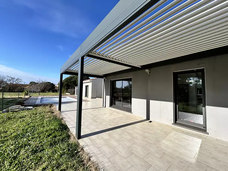 Charmante Villa BBC de 2012, d'une superficie de 150m2 sur une parcelle de 914m2 avec piscine 8X4 au sel avec volet de protection. Grande pièce à vivre de 48m2 avec cuisine au style moderne ouverte et équipée de 11,8m2. Crédence signée, et son coin repas. Cet univers donne sur une large et grande terrasse avec pergola bioclimatique permettant d'avoir une vraie pièce de vie extérieur avec ses volets orientables et ses panneaux de protection motorisés sur les 3 faces. Vous disposerez d'une chambre parentale en rdc avec dressing et espace bains avec douche et baignoire. Un bureau / salle de jeux faisant tampon avec cet espace et le salon/séjour. 2 chambres à l'étage avec placards et salle d'eau. Palier /bureau. Wc à chaque étage. Buanderie. Garage. Forage. Chauffe/eau solaire et chauffage central au gaz. La calme et la nature à 10minutes à pied des commerces et des écoles. Consommation énergétique : 40kw/m2/an. Émission de gaz à effet de serre 3kgCo2/m2/an.. Les informations sur les risques auxquels ce bien est exposé sont disponibles sur le site. www.georisques.gouv.fr. Honoraires à la charge du vendeur.