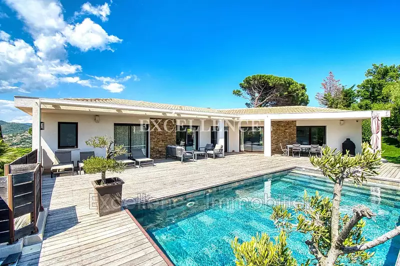 Magnifique villa récente entièrement de plain-pied à la vente, située dans le secteur très prisé du Sémaphore à Sainte Maxime, cette villa exposé plein sud offre de beaux espaces avec une entrée desservant un vaste et lumineux séjour, une cuisine entièrement aménagée, trois belles chambres avec leur salles d'eaux. Une grande terrasse ensoleillée, une piscine chauffée traditionnelle et un superbe jardin aménagé et arboré augmente l'attrait de ce bien. Garage de 100 m². Possibilité d'extension.