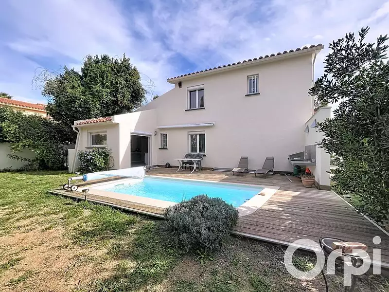 À l'extérieur, le jardin arboré invite à la détente avec son espace barbecue et sa piscine de 5,50 m x 2,50 m, parfaite pour profiter des beaux jours en toute intimité.