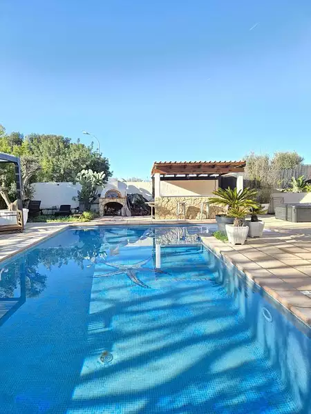 À l'extérieur, le véritable atout de cette villa : une piscine, un spa, une pergola bioclimatique et une cuisine d'été équipée.