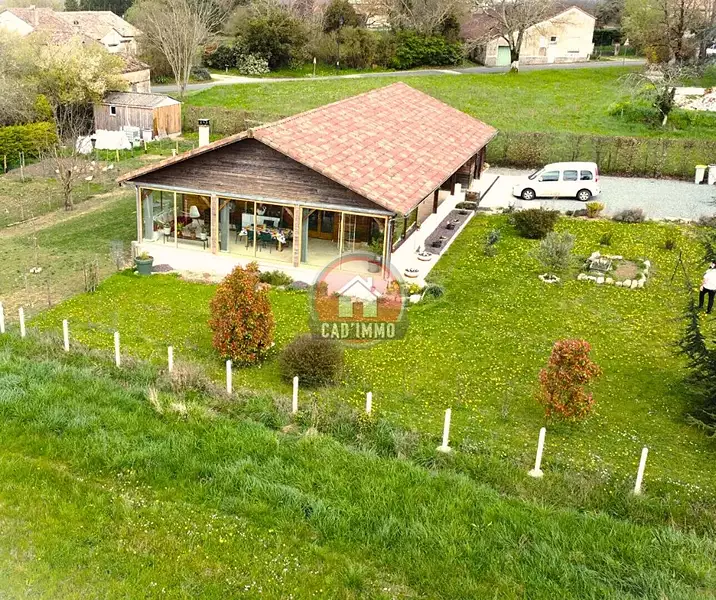 CAD IMMO vous propose proche SIGOULES village avec tous commerces, maison bois contemporaine de plain pied comprenant : une cuisine équipée, grand salon séjour avec poêle à bois , trois chambres dont une avec salle d'eau et wc,, véranda de plus de 42 m² avec vue, garage attenant , cabanon bois de 20 m², terrain clos de 1800 m² à voir rapidement. 0611512831/0553735735. Retrouvez toutes nos annonces sur notre site: