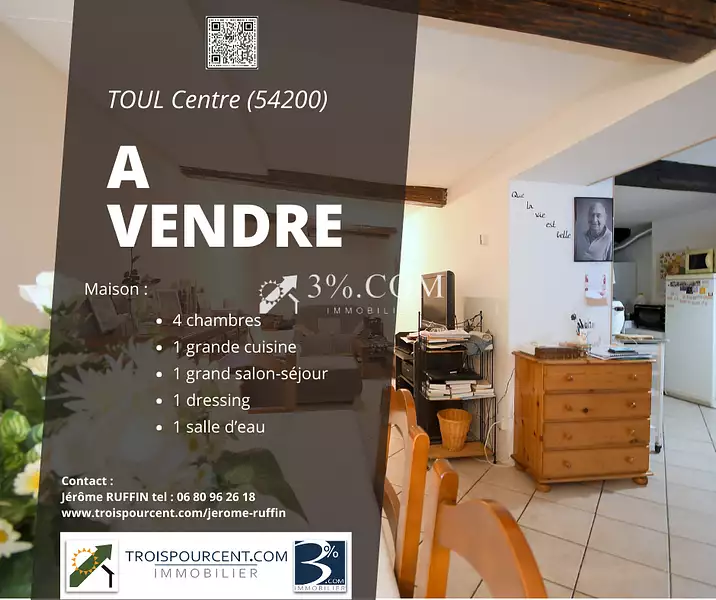 3%.COM, Jérôme RUFFIN a le plaisir de vous proposer cette maison de ville 150 m2 sur Toul centre,