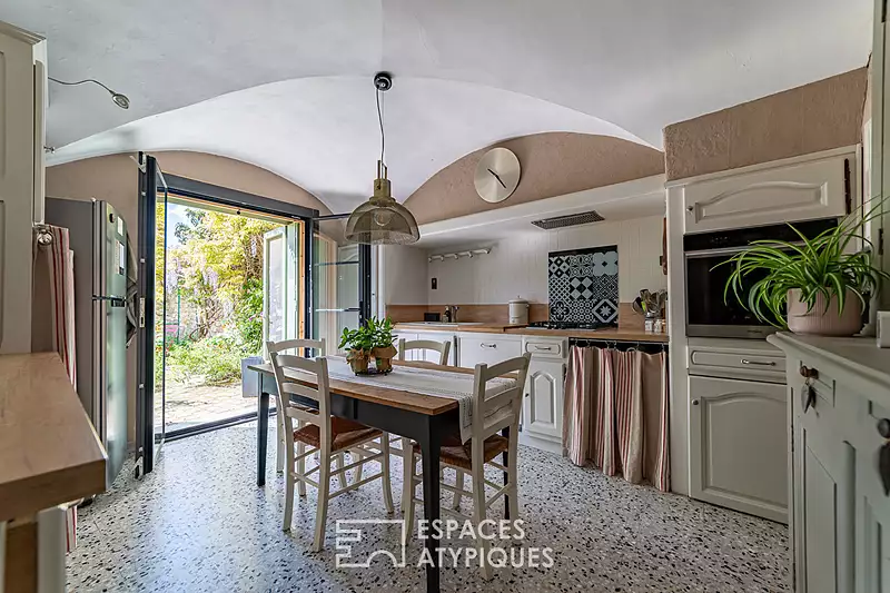 Au coeur d'un village avec commerces, là où la pierre garde en mémoire le passage du temps, se dresse une maison d'environ 150m² qui a su réconcilier l'âme de l'ancien et la douceur du présent. Rénovée avec justesse et sensibilité, elle marie l'authenticité à la modernité, le charme à la fonctionnalité. Entièrement rénovée, chaque pièce semble raconter une histoire, entre poutres apparentes, voûtes d'ogive, sol granito et douceur des matières. Au rez-de-chaussée, la cuisine équipée ouverte sur le jardin respire la convivialité. On imagine les matinées paisibles, le café qui fume, les portes grandes ouvertes sur la nature. La salle à manger et le salon, offrent un cadre de vie chaleureux, vivant, tourné vers le partage et les moments simples. Une belle pièce d'environ 23 m² attend encore sa vocation : atelier, chambre d'amis ou espace créatif, un lieu à inventer selon vos envies. A l'étage, une suite parentale avec sa salle d'eau et dressing aménagé, spacieuse et baignée de lumière, elle séduit par son atmosphère sereine et son élégance. Deux autres chambres offrent de beaux volumes. Enfin, une quatrième chambre mansardée au charme singulier dévoile une ambiance douce et apaisante. Une salle de bain familiale, à la fois élégante et pratique, vient parfaire ce niveau, apportant confort et harmonie à l'ensemble de l'étage. Le jardin, orienté plein sud, où l'on devine les déjeuners d'été, les rires d'enfants, les soirées à la lueur des guirlandes. Son bel espace plat et ensoleillé se prête aisément à la création d'une piscine, qui viendrait parfaire ce cadre idyllique. Le vaste garage de 45 m², ancienne grange au charme authentique, ouvre de multiples possibilités d'aménagement. Il serait envisageable de le relier directement à la maison, offrant ainsi un bel espace supplémentaire à imaginer selon les besoins. La parcelle constructible permet d'envisager une extension. La maison peut être vendue avec une grande partie de son mobilier, tout est prêt pour vous accueillir. Il ne vous reste qu'à poser vos valises, à respirer, à profiter. Un lieu singulier, qui conjugue espace, caractère et potentiel. Au coeur d'un village avec commerces, à 10 minutes d'Uzès. Contact : Virginie 06 77 39 33 14 CLASSE ENERGIE : D / CLASSE CLIMAT : B Les informations sur les risques auxquels ce bien est exposé sont disponibles sur le site Géorisques : www.georisques.gouv.fr Virginie Crouzier (EI) Agent Commercial - Numéro RSAC : 921 225 736 - Nîmes.