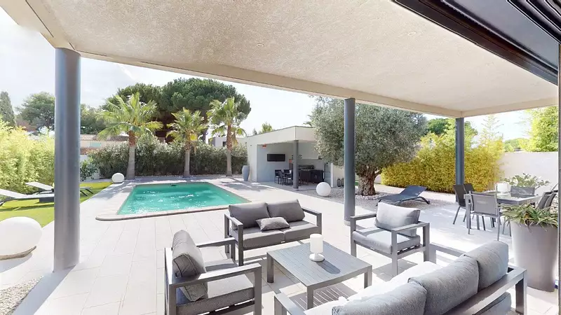 Secteur prisé du Grau d'Agde 34300, Si vous cherchez une Villa contemporaine et luxueuse près de la Mer... alors c'est ici que vous la trouverez dans ce quartier calme du Grau d'Agde. Elle se compose d'un vaste espace jour de 60m² baigné de lumière par de larges ouvertures avec une cheminée au bioéthanol, cuisine équipée, un toilette, une confortable suite parentale avec dressing et douche. A l'étage, un toilette et deux autres suites avec salle d'eau. Cette villa d'architecte spacieuse de type 5 pièces avec garage sur un terrain clos et arboré de 706 m² dispose d'une piscine, le tout arboré par de magnifiques palmiers. Normes RT 2012. Climatisation gainable dans toute la villa, alarme, fermeture des volets centralisée. A 3mn des plages et de toutes les commodités. DPE : A. Honoraires TTC charge vendeur. Inter-Med-Immo34 Agence du Grau d'Agde - Laurent - Plus d'informations sur (réf. 3458345007)