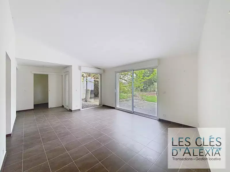 D’une surface d’environ 150 m² sur deux niveaux, cette maison offre de beaux volumes et un agencement modulable. Au rez-de-jardin, vous serez séduit par un séjour lumineux ouvrant directement sur un jardin agréable et ombragé, idéal pour vos moments de détente ou vos repas d’été en extérieur. La cuisine indépendante permet une vraie convivialité au quotidien. Une buanderie, un dégagement, une salle d’eau, des toilettes et un salon – transformable en chambre selon vos besoins – complètent ce niveau.