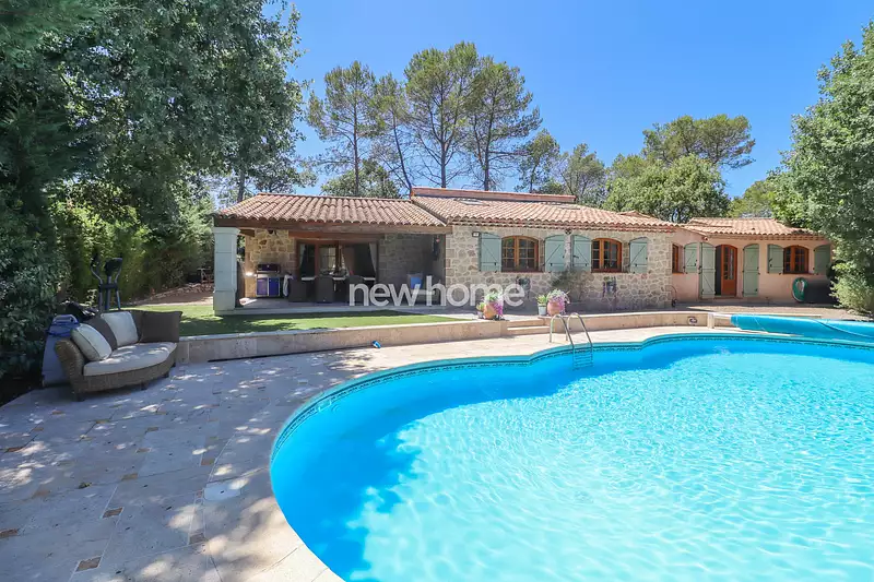 Villa de plain-pied avec piscine et garage, offrant beaucoup de charme et située au calme. Cette magnifique villa lumineuse se compose d'une entrée, d'un coin bureau, d'une buanderie/cellier, d'une cuisine-salle à manger avec accès à la belle terrasse côté piscine, d'un séjour avec de grandes portes-fenêtres, de 2 chambres, d'une salle d'eau avec WC, et d'une chambre avec sa salle d'eau et WC. Garage. Belle piscine. Beau terrain de 1470m2. Portail automatique. Accès facile. La maison est en parfait état, bien située et au calme. À visiter sans tarder !