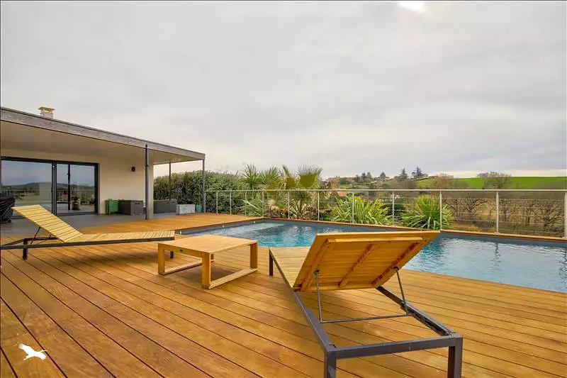 Magnifique maison contemporaine située au cœur de Verfeil, cette propriété exceptionnelle offre un cadre de vie idéal, à quelques pas des écoles. Elle dispose d'une superbe pièce de vie s'ouvrant sur une terrasse avec une piscine. Elle comprend également quatre chambres, dont une suite parentale, un garage et un jardin paysagé.
