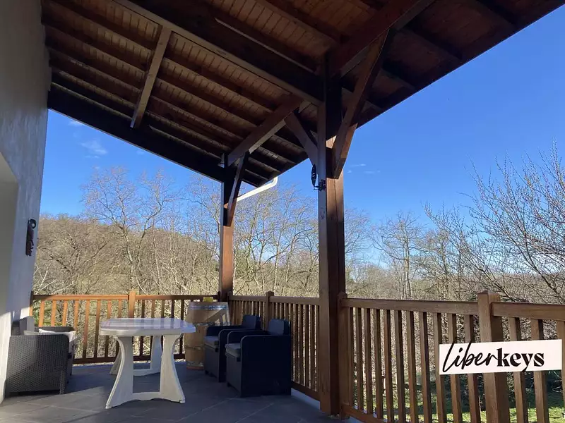 Grande maison individuelle composée d'une vaste pièce de vie d'environ 70 m2 comportant un espace salle-à-manger, un salon donnant sur la terrasse abritée, une cuisine ouverte.