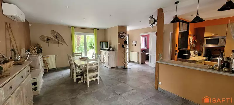 À l'extérieur, cette propriété dispose d'un grand terrain de 1012 m² magnifiquement arboré, avec une piscine pour se rafraîchir lors des journées ensoleillées, ainsi que deux terrasses pour profiter des moments de détente en plein air. À cela s'ajoutent un garage spacieux de 70m², une dépendance de 15m², et quatre places de parking pour un stationnement aisé.