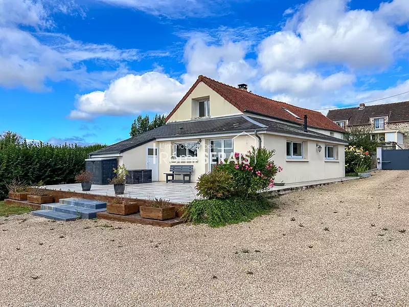 Maison familiale de 152 m² située dans un hameau à seulement 6 km d'Aunay-sur-Odon, cette maison habitable de suite allie confort, charme et beaux volumes, le tout dans un secteur calme et verdoyant. Elle se compose au rez-de-chaussée d'une cuisine aménagée et équipée avec poêle à granulés, d'une salle à manger, d'un salon chaleureux avec cheminée insert, d'une suite parentale (salle d'eau + WC) et d'une salle d'eau supplémentaire avec WC. A l'étage, vous trouverez une mezzanine, une chambre, ainsi qu'une seconde suite parentale avec dressing, salle d'eau et WC. Implantée sur un terrain de 1 311 m², la propriété dispose également d'une dépendance de 20 m², de cabanons de jardin et d'une agréable terrasse exposée plein sud, idéale pour profiter des beaux jours. Un bien rare sur le secteur, parfait pour une famille en quête de confort et de tranquillité. Contactez dès maintenant votre agence L'immobilier par Rémi SERAIS pour organiser une visite et découvrir tout le potentiel de cette maison. Les informations sur les risques auxquels ce bien est exposé sont disponibles sur le site Géorisques : www.georisques.gouv.fr.