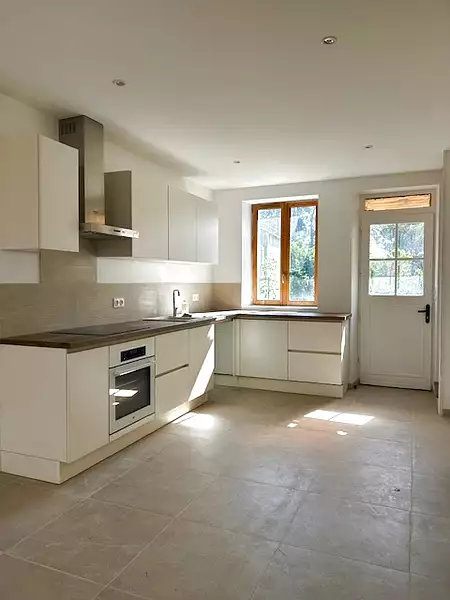 Maison de ville comprenant au rez de chaussée, une entrée sur grande cuisine aménagée, très lumineuse, un grand salon salle à manger donnant sur la rue, un WC