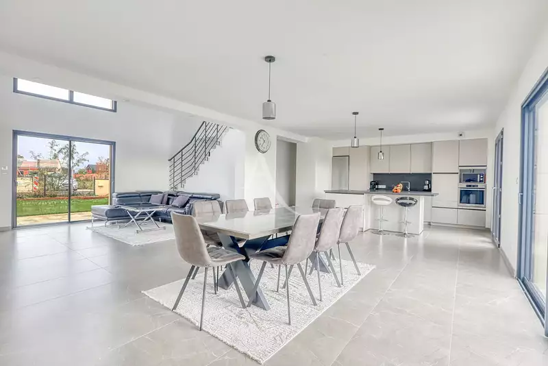 Exclusivité l'Adresse ! Maison coup de coeur ! Idéalement situé à 10 min de Franqueville Saint Pierre, à seulement 5 minutes de l'A13 et 20 min de Rouen. Devenez propriétaire d'une maison livrée début 2025, moderne, parfaitement pensée, mais sans les contraintes, les imprévus et les délais liés à un projet de construction ! Vous serez séduits par ses beaux volumes, sa luminosité et son environnement calme. La maison se compose au rez-de-chaussée d'une entrée avec rangements, d'un WC avec point d'eau, d'un salon séjour avec cuisine ouverte aménagée et équipée, d'une suite parentale avec salle d'eau ainsi que d'un grand cellier. A l'étage, un vaste palier en mezzanine dessert trois chambres, dont une seconde suite avec salle d'eau, ainsi qu'une salle de bains avec WC. Les atouts : - Chauffage au sol intégral - Vide sur séjour apportant espace et clarté - Garantie décennale - Jardin avec vue dégagée DPE A GES A Les informations sur les risques auxquels ce bien est expose sont disponibles sur le site Georisques : www.georisques.gouv.fr Nous rappelons que conformément à l'article l.561-5 du code monétaire et financier, la pièce d'identité de tous les visiteurs sera demandée avant la visite.