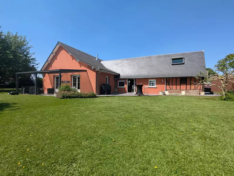 À 10 minutes au nord du Neubourg et à 30 minutes de Louviers. Belle maison pleine de charme de 5 pièces d'une surface de 152 m2, avec 3 chambres et un double garage de 37 m², édifiée sur un joli terrain arboré de plus de 1 400 m² sans vis à vis et au calme !
