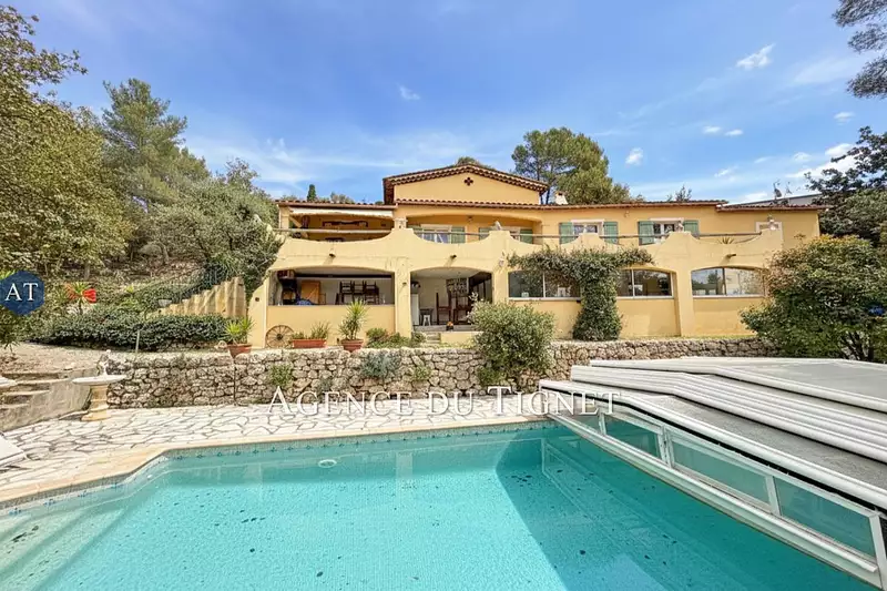 Située sur les hauteurs du Tignet, dans un environnement calme et résidentiel, cette belle villa traditionnelle d'environ 105 m² se compose au rez-de-chaussée : d'une entrée, avec placard, un spacieux séjour salon climatisé de 39 m² avec cheminée insert, une cuisine américaine équipée donnant sur terrasse couverte, une buanderie, deux chambres avec placards, un WC, une salle de bains avec baignoire balnéo et douche.