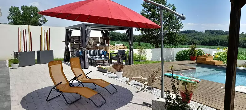 Maison de plain-pied avec piscine & vue Pyrénées à Mouscardès — le bonheur en famille !