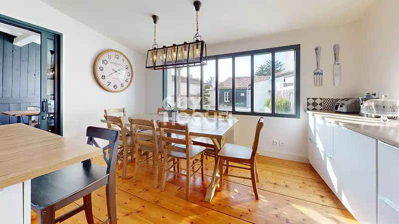 Entièrement rénovée en 2021 - Prestations haut de gamme Située au coeur de Rivedoux-Plage, découvrez cette magnifique maison rénovée avec goût offrant des prestations de qualité et une décoration soignée. Au rez-de-chaussée, une grande pièce de vie lumineuse avec cuisine entièrement équipée vous accueille, idéale pour partager des moments conviviaux. Deux belles chambres disposent chacune de leur propre salle d'eau. A l'étage, deux autres chambres, elles aussi dotées de leur salle d'eau privative, se répartissent autour d'un charmant palier. En annexe, un chai indépendant totalement réaménagé, comprenant une agréable pièce de vie avec cuisine équipée ainsi que deux chambres, parfait pour recevoir famille ou amis en toute autonomie. Le tout est complété par un jardin clos paysagé avec piscine, un véritable havre de paix à quelques minutes de la plage. Une propriété rare, prête à vous accueillir sans travaux à prévoir. Un emplacement idéal pour une résidence principale, secondaire ou un investissement locatif. Contactez l'agence Guy Hoquet SAINTE MARIE DE RÉ dès maintenant pour organiser une visite ! Les informations sur les risques auxquels ce bien est exposé sont disponibles sur le site Géorisques : www.georisques.gouv.fr.