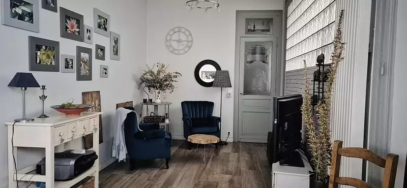 - Au RDC : un espace de vie confortable salon/séjour, une cuisine équipée , une grande buanderie,1 WC et une grande cave