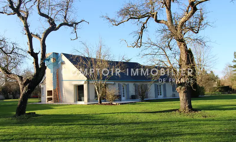Entre Evreux et Louviers, belle maison fonctionnelle disposant d'un beau salon/salle àmanger ouverte sur jardin et rivière, cuisine aménagée et équipée donnant sur salle à manger et terrasse, 3 chambres, salle de bains/douche, wc, bureau. Terrain de 5484 m2 en bordure de rivière.