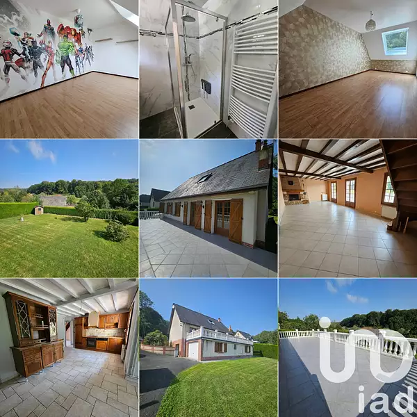 iad France - Dimitri Dore vous propose: SECTEUR BACQUEVILLE-EN-CAUX, AXE ROUEN-DIEPPE proche des Autoroutes A28/A29, à proximité des ECOLES, COMMERCES, MEDECINS...cette belle maison FONCTIONNELLE DE PLAIN PIED située dans un environnement CALME et VERDOYANT se compose au rez-de-chaussée d'une entrée desservant une grande cuisine aménagée et équipée de 25M2 environ avec un coin repas, un grand séjour/salon avec CHEMINEE A INSERT de 50M2 environ (possibilité de créer une chambre supplémentaire ou une salle de jeux) et un accès direct à une chambre avec PLACARDS, une salle d'eau, un Wc indépendant. A l'étage, une pièce palière desservant deux chambres, un bureau ou une petite chambre enfants, une salle d'eau avec Wc, un GRENIER (potentiel d'agrandissement). Le tout édifiée sur un Terrain clos et paysagé de 1044M2 environ, une seconde TERRASSE à l'avant exposée S/SO avec STORE BANNE. SOUS-SOL COMPLET de 110M2 environ comprenant un premier GARAGE une voiture de 18M2 environ carrelé et isolé, une chambre, une salle d'eau avec Wc, un second GARAGE deux voitures comprenant une réserve/ATELIER. Nombreuses places de stationnement, deux abris de jardin, un BUCHER. Chauffage central au fuel et cheminée à insert au rez-de-chaussée, électrique (radiateurs récents) à l'étage. FIBRE OPTIQUE INSTALLEE. Menuiseries en DOUBLE VITRAGE et PVC, VOLETS BATTANTS PVC, VELUX récemment changés avec volets roulants solaire. Assainissement individuel. Taxes Foncières 579€.rasse de 50M2 environ avec une très belle vue dégagée, une chambre avec PLACARDS, une salle d'eau, un Wc indépendant. A l'étage, une pièce palière desservant deux chambres, un bureau ou une petite chambre enfants, une salle d'eau avec Wc, un GRENIER (potentiel d'agrandissement). Le tout édifiée sur un Terrain clos et paysagé de 1044M2 environ, une seconde TERRASSE à l'avant exposée S/SO avec STORE BANNE. SOUS-SOL COMPLET de 110M2 environ comprenant un premier GARAGE une voiture de 18M2 environ carrelé et isolé, une chambre, une salle d'eau avec Wc, un second GARAGE deux voitures comprenant une réserve/ATELIER. Nombreuses places de stationnement, deux abris de jardin, un BUCHER. Chauffage central au fuel et cheminée à insert au rez-de-chaussée, électrique (radiateurs récents) à l'étage. FIBRE OPTIQUE INSTALLEE. Menuiseries en DOUBLE VITRAGE et PVC, VOLETS BATTANTS PVC, VELUX récemment changés avec volets roulants solaire. Assainissement individuel. Taxes Foncières 608€.