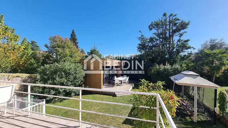Belle maison familiale avec jardin et dépendance. Belle maison familiale dans une des plus jolies rues du Bouscat. Véritable écrin de lumière, cette maison des années 50, avec signature d'architecte, saura vous séduire par son hall d'entrée majestueux composé de pierre alternée de cabochons au sol, et pavé de verre pour la clarté du volume. L'escalier en pierre et fer forgé dessert les 3 chambres de l'étage avec salle de bain, WC et les 2 autres chambres du R-1 ainsi qu'un espace lingerie et buanderie aménagé de murs de placards, accessible aussi depuis le jardin offrant ainsi une vie de famille très fonctionnelle. L'espace de vie avec conduit de cheminée en attente est largement vitré sur 3 côtés, ouvert sur la terrasse, un escalier permet de profiter du jardin de 200M2 et de la dépendance, bâtiment neuf en bois et baie vitrée acier noir. L'ensemble a beaucoup de charme, architecture des année 50 dans un esprit 'bâteau', garde-corps métalliques, pavés de verre, brique, jeu de lumière et transparence. Proche du parc bordelais, du tram D, des écoles et des commerces. Cette maison de famille très entretenue vous offrira un confort de vie, agrémenté d'une dépendance neuve, le terrain est piscinable. 3 places de stationnement pour les voitures, arrosage intégré, travaux de rénovation récents, alarme, fibre, volets électriques, portail électrique. chauffage au gaz, et climatisation réversible. Toiture refaite et isolée en 2000, isolation par l'extérieur, gouttières et descentes d'eau neuves ainsi que l'ensemble de l'installation électrique. Appelez-nous au 0557225500, pour visiter ce bien rare. Amateurs d'architecture des années 50, ne manquez pas ce rendez-vous !. Les informations sur les risques auxquels ce bien est exposé sont disponibles sur le site Géorisques : www. georisques. gouv. fr. Montant estimé des dépenses annuelles d’énergie pour un usage standard : entre 2140 et 2950 Euros/an (année de référence 2023)