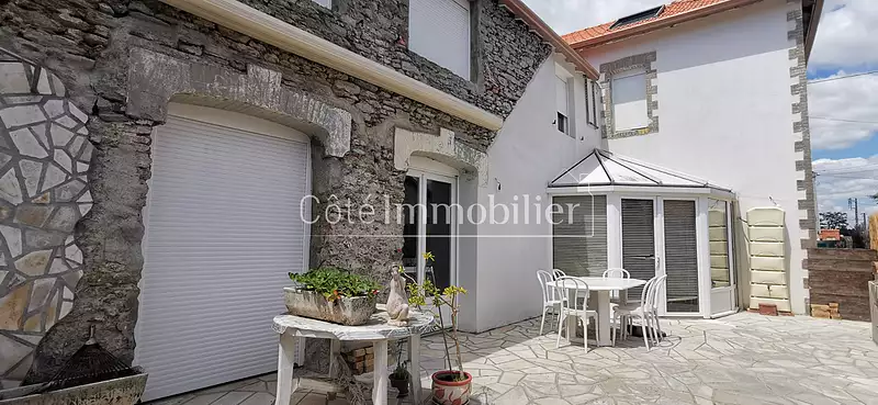 COTE IMMOBILIER - AGENCE GOUDY THARON PLAGE A Préfailles, proche commerces et à 500m de la plage de la source, Maison d'habitation comprenant une entrée dans une véranda ouverte sur séjour, cuisine aménagée et équipé, salle de bains (baignoire et douche) avec WC. A l'étage, un grand palier/bureau dessert 3 chambres (dont 1 aperçu mer), une salle d'eau, WC indépendant. Au dernier étage, combles aménagées. Un garage attenant. Pompe à chaleur air /eau pour le plancher chauffant de rez-de-chaussée installée en 2024 Le tout édifié sur un terrain clos de 180 m². COTE IMMOBILIER AGENCE GOUDY THARON PLAGE 10 rue Ernest Chevrier 44730 THARON PLAGE WWW.COTE-IMMOBILIER.COM (3.33 % honoraires TTC à la charge de l'acquéreur.)
