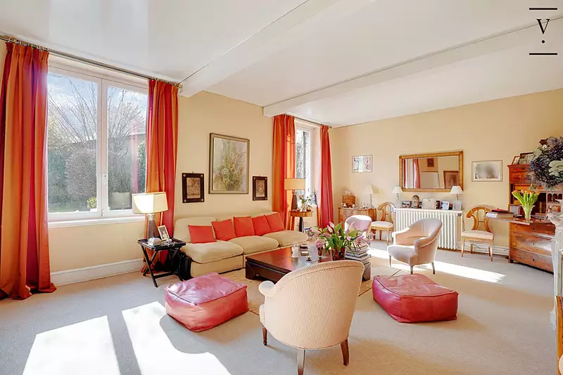 RUEIL-MALMAISON / DOMAINE PRIVÉ Dans un quartier très recherché, proche du centre ville de Rueil-Malmaison, des commerces et des écoles. Au coeur d'un célèbre domaine privé et au détour d'une impasse calme et arborée. Magnifique maison des années 20 (agrandie dans les années 50) d'une surface de 141,78 m2 (Loi Carrez+ chambre indépendante) édifiée sur un beau terrain intimiste et sans vis à vis de 617 m2 et de plain pieds sur l'habitation. Le rez de chaussée de cette charmante demeure se compose d'un grand séjour avec cheminée de 35 m2, d'une salle à manger de près de 12 m2, d'une cuisine équipée de 14,82 m2 donnant accès à une grande terrasse parfaitement exposée, d'une belle chambre de 15 m2 donnant sur le jardin et d'une salle d'eau avec wc. Le 1er étage offre un dégagement, 3 grandes chambres lumineuses donnant sur le jardin (12,91 m2, 13,24 m2 et 15,63 m2) ainsi qu'une salle d'eau avec fenêtre et wc. Une chambre de service, avec point d'eau, de plus de 9m2 est accolée à la maison. Toutes les pièces sont baignées de lumière et font de cette maison un paradis dans un écrin de verdure. Une grande cave de plus de 30 m2 et un vaste garage de 27,40 m2 complètent ce bien rare sur le marché !! (Renseignement en cours pour une possibilité de surélévation de la maison) Un bien proposé par l'Agence du Val d'Or / PP / 01.45.06.60.13 Les informations sur les risques auxquels ce bien est exposé sont disponibles sur le site Géorisques : www.georisques.gouv.fr