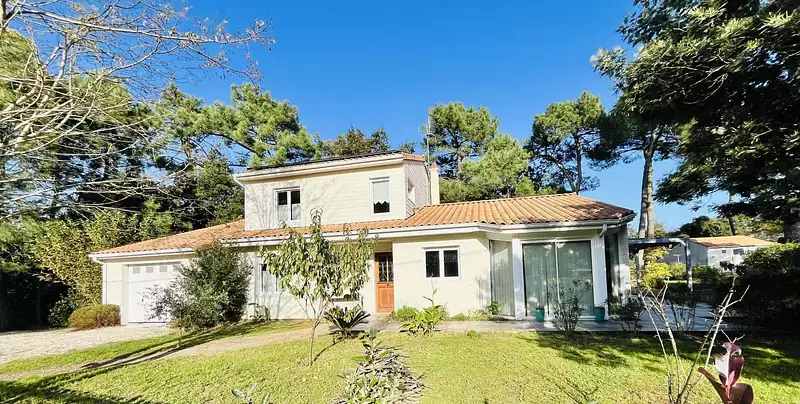 SAINT AUGUSTIN SUR MER, à 700 m des commerces et 4 kms des plages de SAINT PALAIS sur MER, accessibles par pistes cyclables sécurisées, spacieuse maison édifiée en 2003 sur un magnifique terrain de plus de 1 800 m² arboré. La maison est composée de plain-pied : d'une grande entrée, pièce de vie de 57 m² offrant une triple exposition avec plafonds rampants et cheminée, cuisine équipée ouverte, vaste terrasse en partie couverte, grande chambre, salle d'eau, wc, grande buanderie, garage avec pièce à l'étage isolée équipée d'un grand vélux pouvant servir de bureau ou atelier d'artiste. A l'étage de la maison : mezzanine, 2 chambres, salle d'eau, wc. Chauffage au sol par pompe à chaleur au rez-de-chaussée et panneaux solaires. En annexe : une dépendance isolée en bois avec de grandes fenêtres, électricité et point d'eau pouvant être aménagée en studio indépendant, une autre dépendance servant de stockage.