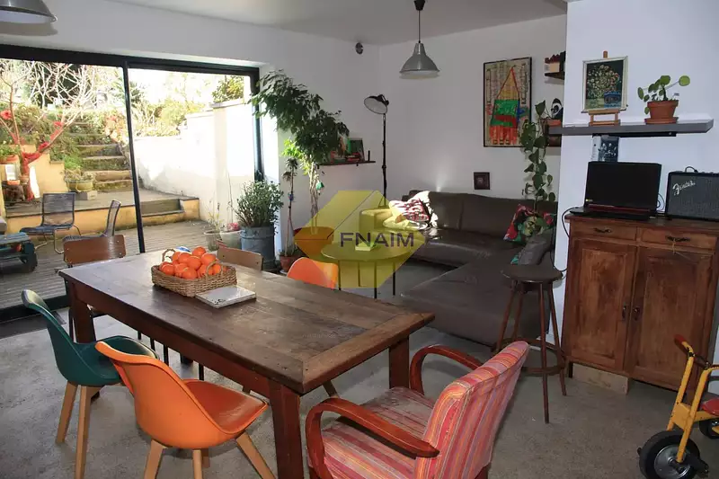En centre village, très belle maison de caractère 7 pièces, charme de l'ancien garanti, comprenant : entrée très spacieuse, séjour salon donnant sur terrasse, cuisine équipée donnant sur une deuxième terrasse, wc, atelier, 1er étage grande chambre, salle de bains mixte, wc, bureau (possible chambre), 2ème étage grande mezzanine, deux chambres, wc.