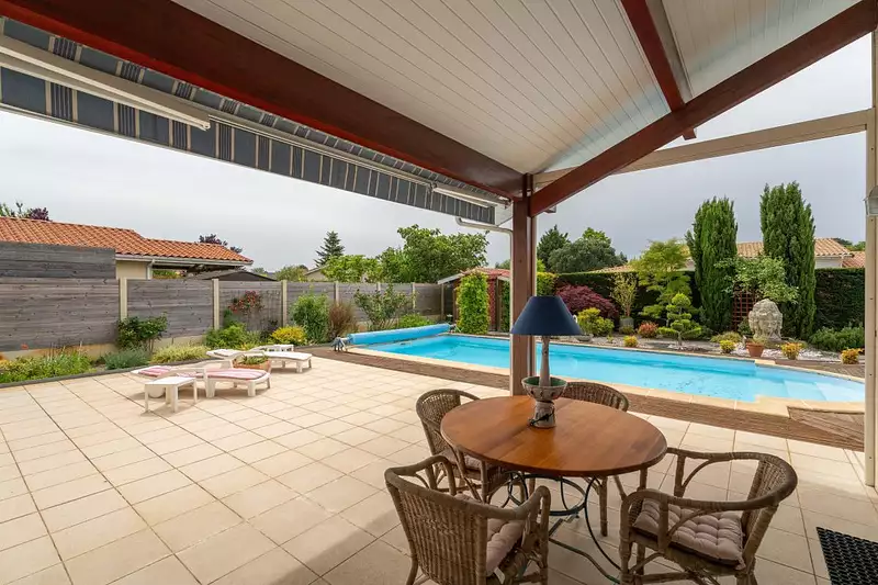 Le terrain arboré et soigneusement entretenu accueille une belle piscine, idéale pour profiter des beaux jours en toute tranquillité.