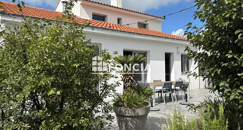 Bouguenais, très belle maison dans quartier calme sans vis-à vis avec piscine sur terrain d'environ 1973 m2, comprenant entrée grand séjour salon, cuisine ouverte aménagée et équipée, salon télé, vue sur jardin, chambre parents salle de bains, à l'étage 3 chambres salle de bains. Non mitoyenne avec garage local technique piscine.