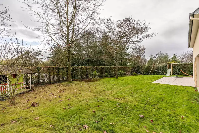 A VENDRE CHEZ CABINET BARTH IMMOBILIER VERN SUR SEICHE ! MAISON FAMILIALE - 5 CHAMBRES - BEAU TERRAIN - CORPS-NUDS Retrouvez nos biens en vidéo sur notre compte Instagram : barth_immobilier Venez découvrir cette charmante maison familiale de 2002, située dans le centre de Corps-Nuds, dans un quartier calme et résidentiel, en impasse et à proximité des commerces, transports en commun et de la gare TER. Vous profiterez d'une entrée séparée avec placard, d'une belle pièce de vie lumineuse (orientée SUD) avec poêle à bois. La cuisine, ouverte, est très fonctionnelle et donne accès à une buanderie/arrière cuisine. Le rez-de-chaussée se compose également d'un WC séparé et d'une chambre avec grand placard et salle d'eau attenante. La visite se poursuit, ensuite, à l'étage, par un palier desservant 4 très belles chambres, une salle de bains et un WC séparé. Côté extérieurs, vous serez charmés par sa grande terrasse et son terrain de près de 800 M², calme, arboré, paysagé et sans vis-à-vis. En complément : un grand double garage avec grenier au dessus permettant le stockage ou bien l'aménagement d'une pièce supplémentaire. A noter que la maison est très fonctionnelle et que l'ensemble des peintures ont été refaites. Si vous recherchez une maison familiale, fonctionnelle, aux beaux volumes et dans un quartier calme et proche des transports et commodités.. ALORS N'ATTENDEZ PLUS ! Référence : 1553JP (2.70 % honoraires TTC à la charge de l'acquéreur.)