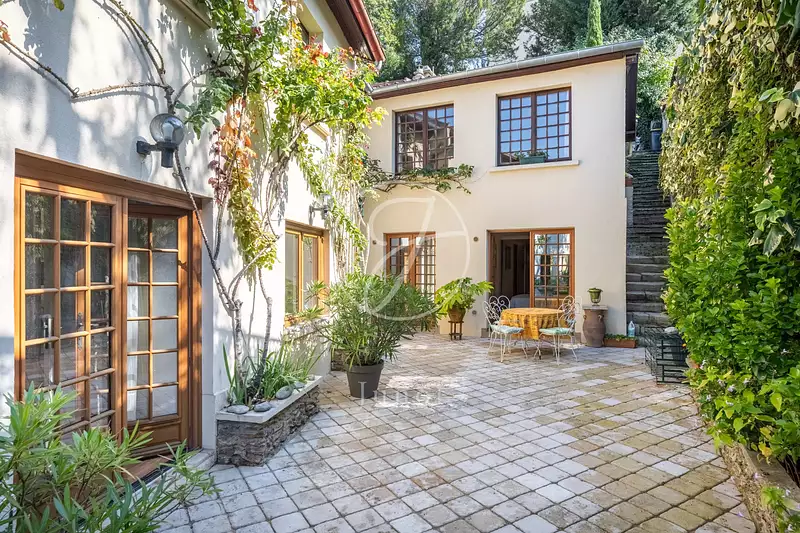 Dans le village historique de La Celle Saint-Cloud, jolie maison ancienne en L, jalousement préservée à l'abri des regards et très au calme.