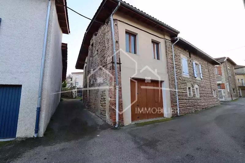 Maison de village avec garage : deux plateau de 48 M2, pas de compteurs et non raccordée au réseau d'eau, viabilités en bordure, menuiseries bois double vitrage.