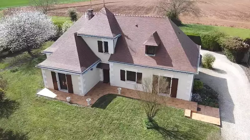 Dépendances : cave, terrasse, appentis, garage. L'ensemble sur un terrain de 1 730 m² clos et arboré.
