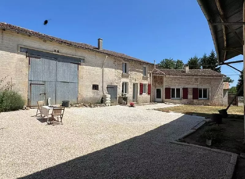 Fiche Id-SUP176073 : Nichée dans un hameau paisible à proximité de Sauzé-Vaussais, cette jolie maison en pierre, lumineuse et pleine de charme, offre un cadre de vie agréable avec ses nombreuses dépendances disposées autour d’une belle cour fermée. Assainissement aux normes.Au rez-de-chaussée :• Entrée (8 m²) – sol en d alles• Grande cuisine / salle à manger (39 m²) – carrelage, poêle à granulés, arrivées d’eau et d’électricité prêtes pour un îlot central• Salon chaleureux (33 m²) – parquet flottant, murs en pierre, poêle à bois, mezzanine de 16 m² pouvant servir de chambre d’appoint• Salle d’eau (8 m²) – parquet flottant, lavabo, WC, velux• Buanderie (15 m²) – carrelageÀ l’étage :• Palier (4 m²) – moquette• WC indépendant (1 m²) – lino• Chambre parentale (18 m²) – parquet flottant avec sa salle de bain privative (10 m²) – moquette, baignoire, lavabo• Deuxième chambre (18 m²) – parquet flottantExtérieur :• Grange attenante de 150 m²• Étable de 62 m² avec grenier• Atelier de 22 m²• Hangar de 24 m²• Poulailler• Grande cour close en cœur de propriétéEn face de la maison, de l’autre côté d’un petit chemin :• - Mentions légales : Proposé à la vente à 129950 Euros (honoraires à la charge du vendeur) - Classe Energie D : 195 kWh.m2.an - (DPE ancienne version) - Reseau Immo-Diffusion Ruffec - Pour plus d'informations, contactez notre secrétariat au 09 74 53 13 81 (Appel gratuit ou prix d'une communication locale)