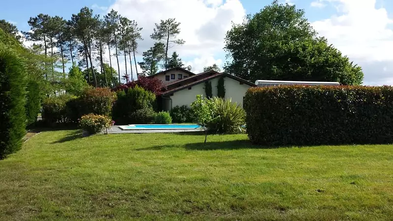 A 15' de Dax, commune de Narrosse, maison d'architecte de 1990 offrant 155 m² habitables. Sur son parc de 5000 m² avec piscine, double garage, boulodrome, la maison se compose de 4 chambres, 2 salles d'eau, une grande pièce de vie salon séjour, une cuisine modernisée équipée aménagée avec sa salle à manger, une grande pièce salle de jeux, cellier, buanderie, véritable cave, il ne lui manque rien ! Piscine au sel entièrement remaniée en 2024, tableau électrique neuf, climatisation réversible. Audit énergétique à disposition.