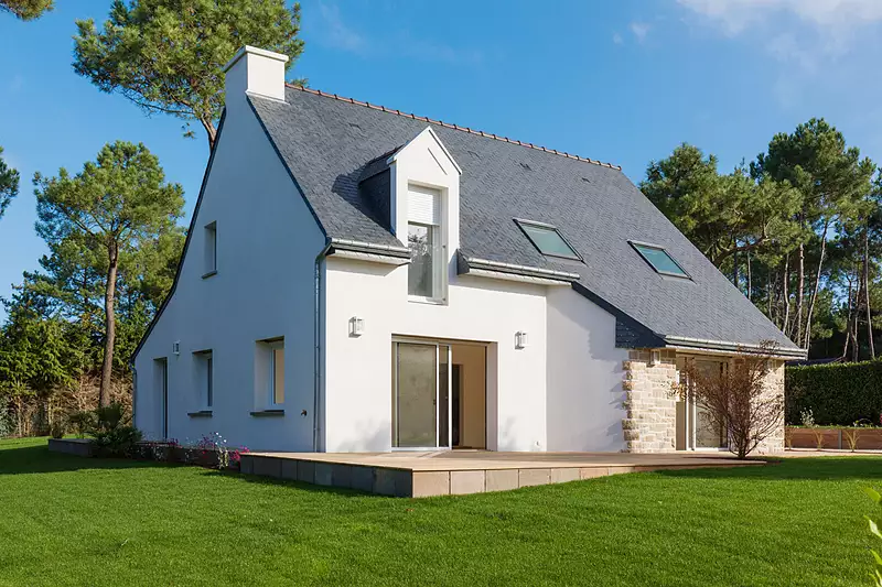 ERQUY, magnifique maison contemporaine de 155m2 habitables sur 845m2 de terrain, entièrement rénovée par Architecte, située sur le Cap d'Erquy à 700m des plages sauvages, entièrement rénovée en 2025, elle offre tout le confort d'une maison neuve (isolation, plomberie, électricité, sols, cuisine, chauffage aérothermie), comprenant en rez-de-chaussée: spacieuse pièce de vie de 47m2 ouvrant sur terrasse et jardin au sud, cuisine ouverte équipée, une suite parentale avec SDE et dressing privatif accès terrasse coté ouest, wc avec lave main, garage avec buanderie; à l'étage: grande mezzanine, 3 chambres avec placards, salle d'eau, wc; le tout sur une parcelle arborée de 850m2, une cour gravillonnée avec stationnements, TRÉS BELLES PRESTATIONS, ASSURANCES D.O ET DECENNALES. (4.00 % honoraires TTC à la charge de l'acquéreur.)