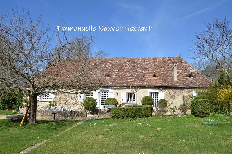 Charmante périgourdine en pierres esprit "cottage" située au calme et en position dominante aux abords d'un petit village, à 15 kms de Bergerac. La grande pièce à vivre de 62 m2 aux poutres blanchies comprend une cuisine ouverte avec une belle cheminée à foyer ouvert, un salon avec poële à granulés performant pour une chaleur confortable en hiver, en plus du chauffage central au gaz avec chaudière récente. Une grande chambre au rdc ainsi qu'une salle de bain/douche et des wc séparés permettent une vie de plain-pied. Une pièce bureau peut également être transformée en 2ème chambre. A l'étage, 3 grandes chambres dont une en enfilade, et un espace dressing/rangement. A l'extérieur, une terrasse plein sud avec spa permet de profiter du joli jardin arboré et paysagé avec une belle vue dégagée sur la campagne environnante. Le terrain offre également un verger et une partie ouvrant sur un bois. Un double-garage, un atelier de deux pièces, et un bûcher viennent compléter l'ensemble. Ne tardez pas, ce bien saura en séduire plus d'un ! Uniquement chez SEXTANT ! Prix TTC et Honoraires à charge vendeur TTC Agent commercial Sextant France - Emmanuelle Bouvet agent basé à BERGERAC - 06 19 58 87 49 - Plus d'informations sur réf. 24531